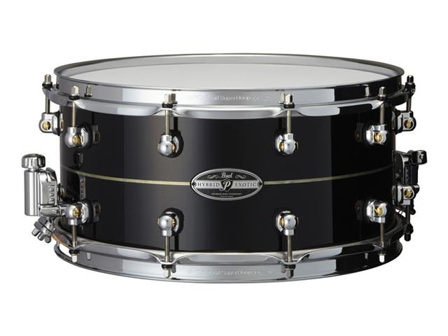 Disponibles en trois tailles, les caisses claires Kapur/Fiberglass sont disponibles en laque ébène (#308) avec incrustations Pearloid. Toutes les caisses claires hybrides exotiques sont équipées des célèbres cerceaux SuperHoop II de Pearl, des cosses STL100, du filtre SR1000, de la peau de frappe Coated Remo Ambassador et des tiges de tension Spin-Tight.