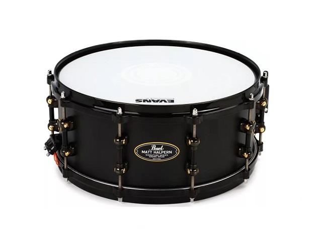 Pour correspondre à son jeu de batterie agressif, l'artiste Pearl Matt Halpern a conçu chaque élément de sa caisse claire Signature pour compléter - et contraster - la nature complexe de son jeu. Des touches subtiles, comme le revêtement en poudre noire et les trois évents de coque aident à tempérer la nature vivante de sa coque en laiton de 1,5 mm. Les cerceaux moulés sous pression MasterCast améliorent la projection, mais les têtes Evans Heavyweight Dry offrent une attaque souple. Son filtre à cliquet SR150 offre une sensibilité accrue, tandis que des touches visuelles comme les cosses de tube pivotantes STL noires/laiton et les joints jaunes frappants servent à inspirer la performance idéale. Le résultat final est une caisse claire qui sert dans une variété de styles et de situations avec une polyvalence tranchante et sèche et répond uniformément aux coups les plus lourds.
