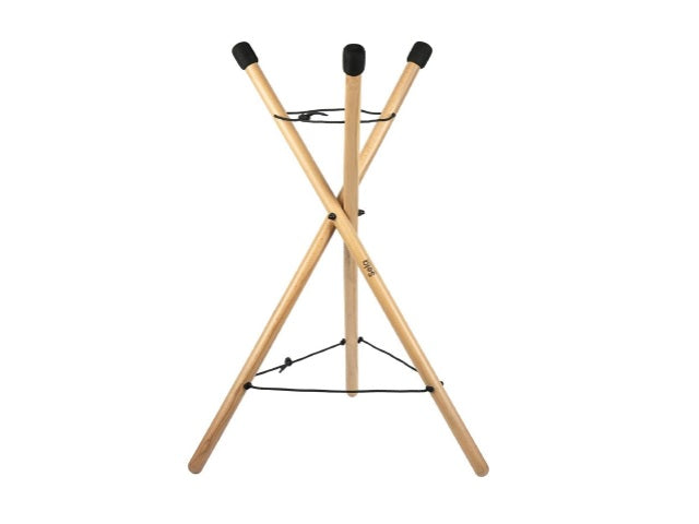 Le support pour handpan Sela est un support de performance léger et pliable, spécialement conçu pour les handpans et les instruments à percussion. La hauteur du support pour handpan est de 87 cm. Il est donc idéal pour jouer confortablement debout. En même temps, le support augmente la liberté de mouvement lors du jeu. Grâce aux cordons attachés, il peut être réglé en hauteur facilement et de manière variable. Le bois de hêtre laqué mat est très résistant et léger. Les trois surfaces de contact spéciales en mousse empêchent le glissement et préservent en même temps le beau son résonant de l'instrument. Le support peut être monté ou plié rapidement et facilement. Il est donc idéal pour les concerts, la musique de rue ou l'utilisation en studio.